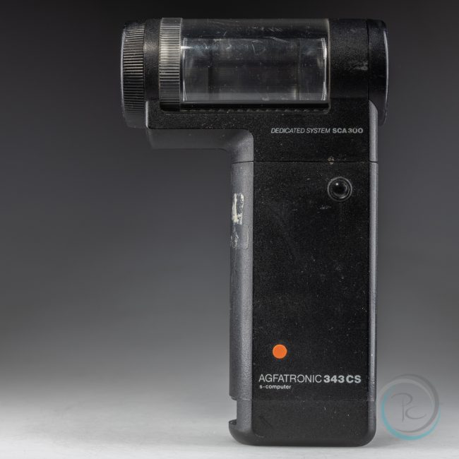 Agfatronic 343 CS е сравнително мощна светкавица, която се закрепва към фотокамерата посредством шина и стои в страни. Няма подвижна глава, но рефлектора може да се върти нагоре до 90 градуса, компенсирайки подвижността до някъде. Може да работи в TTL режим с нужният адаптор SCA 300 за конкретната марка фотокамера. Липсата на подвижност на главата…